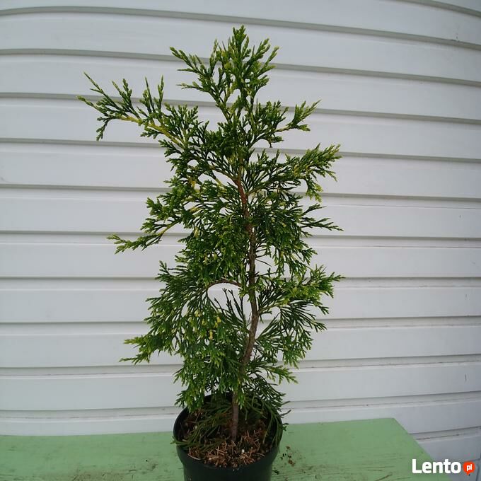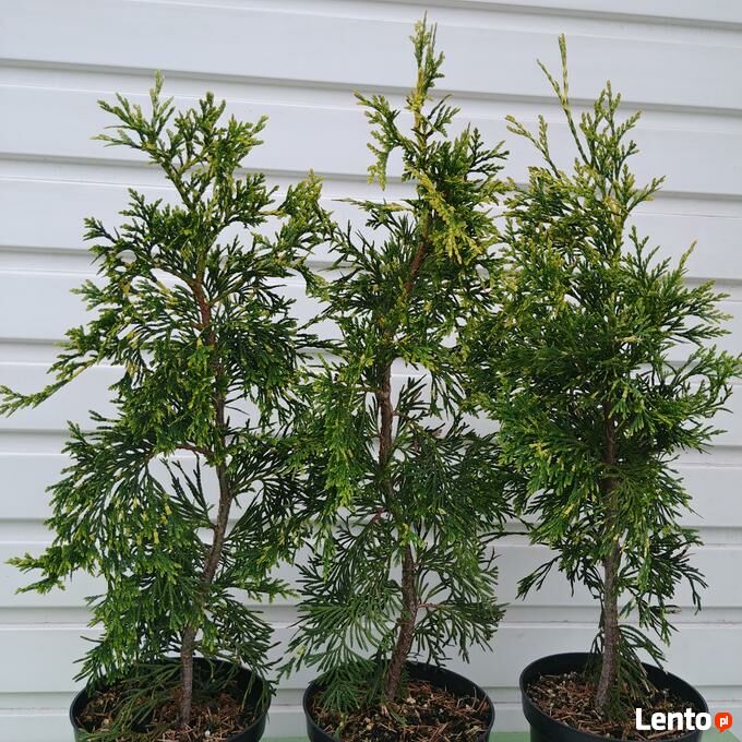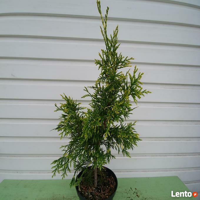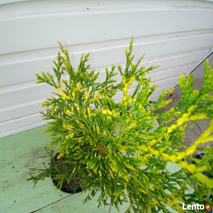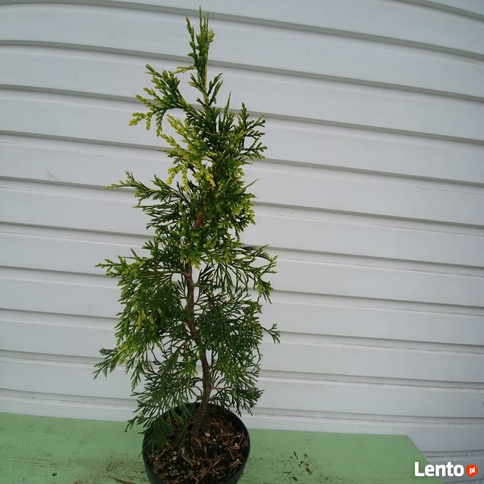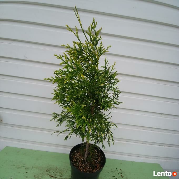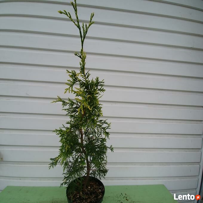 Sprzedam sadzonki żywotnika olbrzymiego (Thuja plicata) 'Zebrina Extra Gold' w pojemnikach C-1,5 (poj. 1,5 litra). Wysokość sadzonki pow. 50 cm. Nadają się do bezpośredniego sadzenia do gruntu lub do dalszej produkcji. Są dobrze ukorzenione i zahartowane - rosną na wolnym powietrzu. Zasilone nawozem długo działającym do końca okresu wegetacyjnego. Sadzonki z doniczek można przesadzać praktycznie przez cały rok.